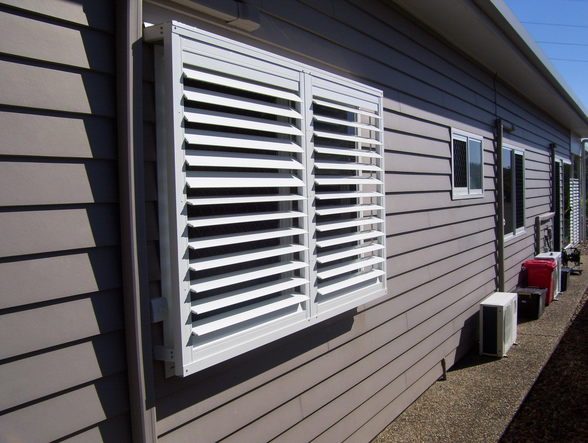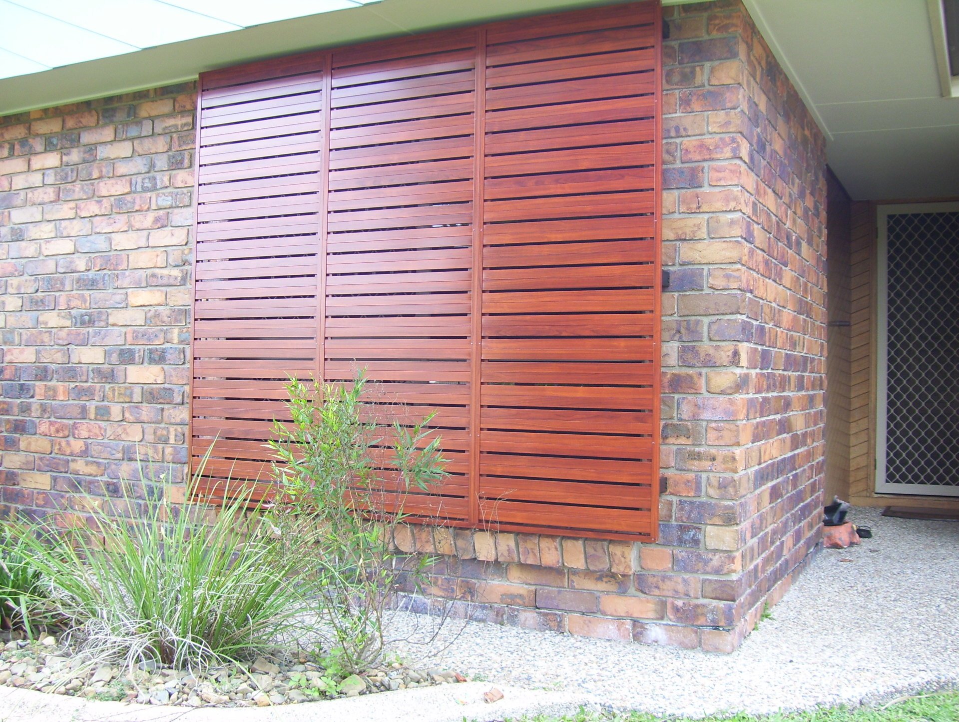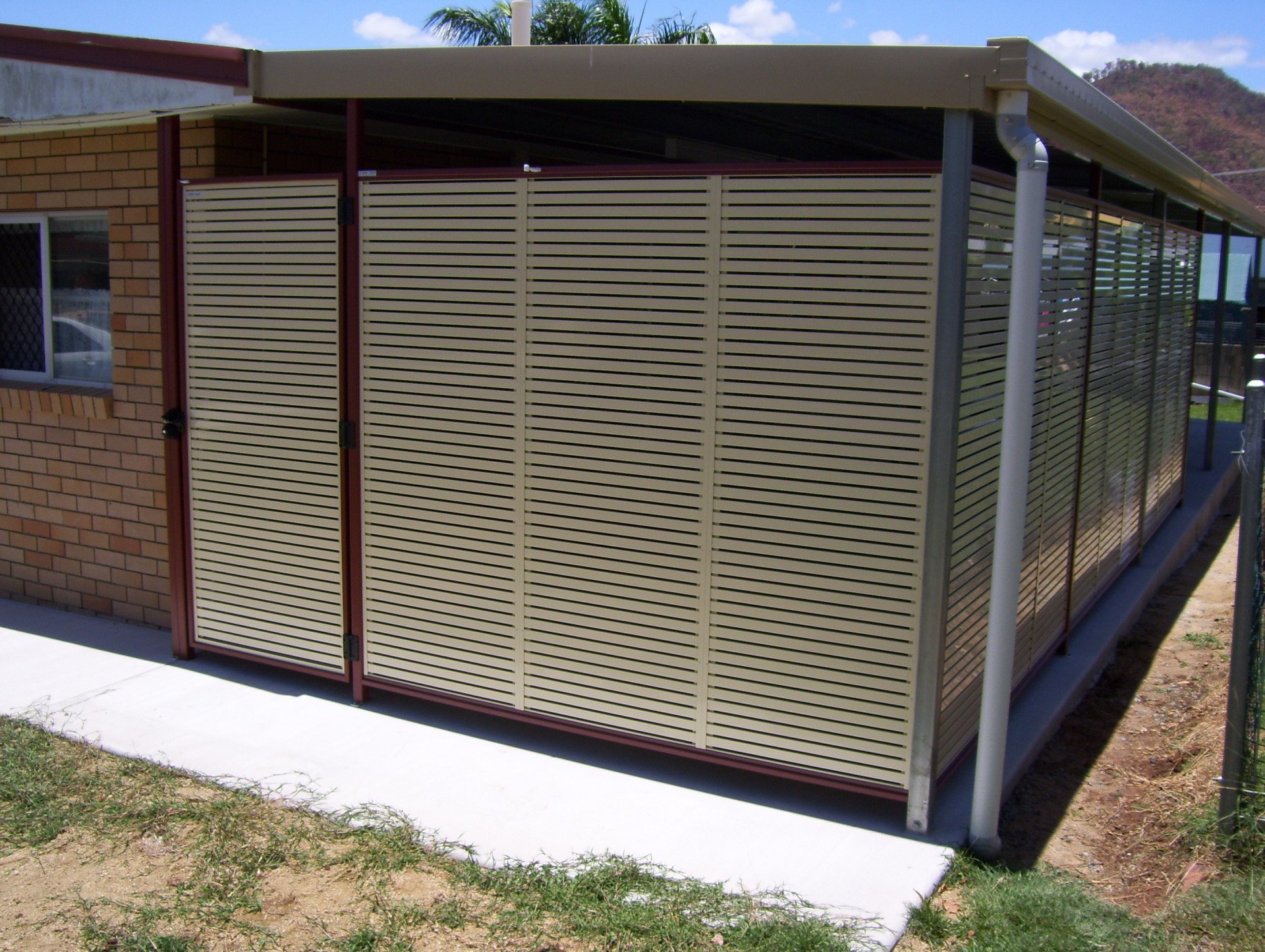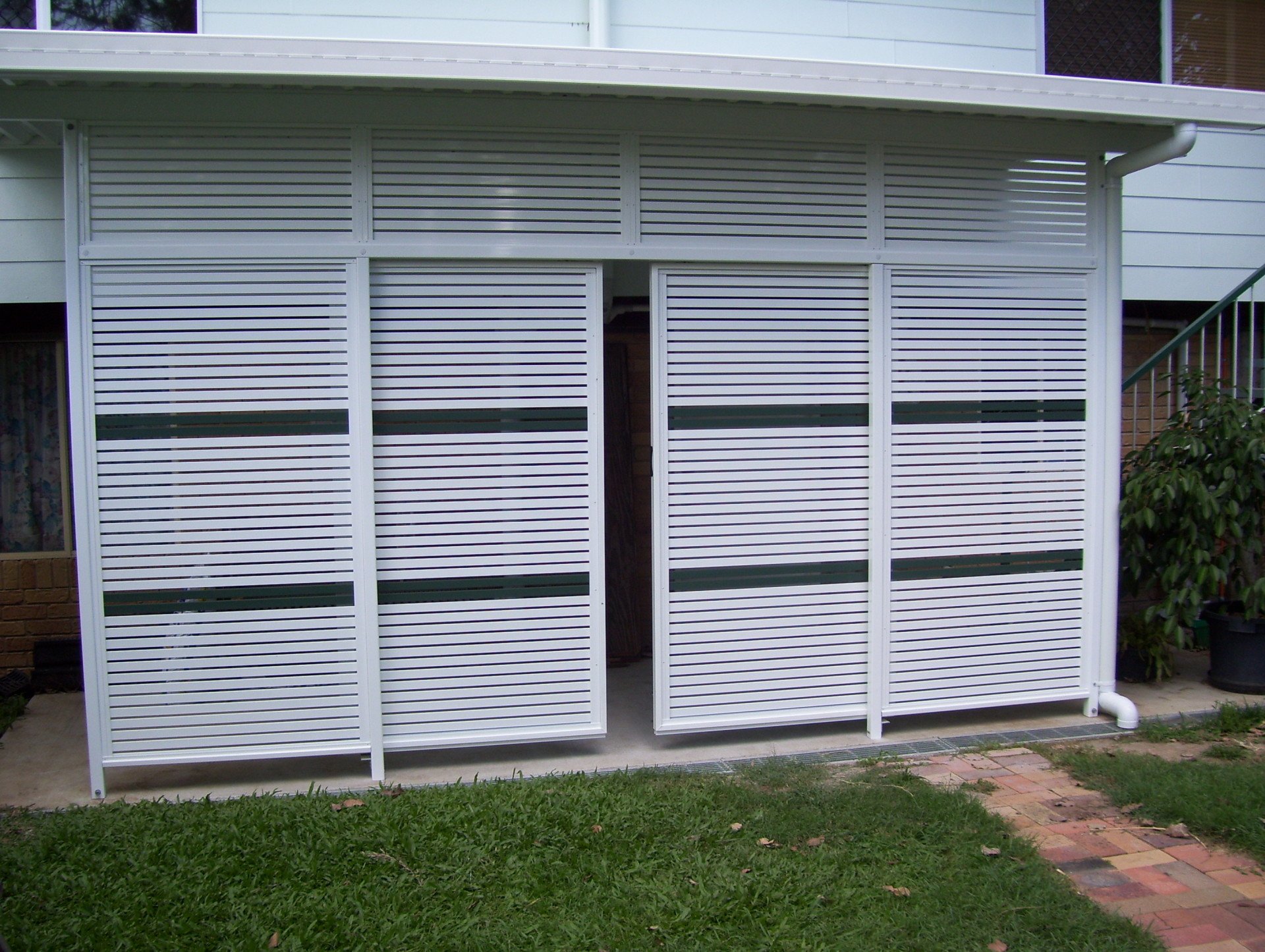 By customising the slat size and spacing, we can tailor panels for privacy and airflow. By incorporating matching welded aluminium doors, we can combine access and security. These doors can be either sliding or hinged.